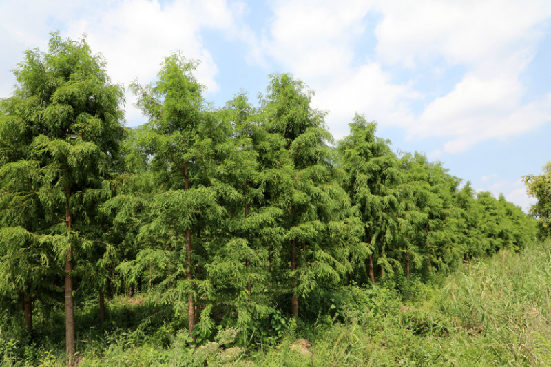 在夏季和秋季對中山杉進行無性系嫩枝扦插時,采集枝條應(yīng)選擇空氣濕度較大的清晨或是陰雨天,并將采到的枝條及時運到室內(nèi)或是室 涼無風處剪穗,當天采集的枝條應(yīng)當及時完成剪穗扦插,不要超過24小時。插穗要選擇粗壯的,長度為10-12厘米,中段的插穗可以短一些,較細的梢端插穗則稍長。確保切口光滑、整齊,每根插穗的上端應(yīng)當保留三四個脫落性小枝,這樣可以在扦插后進行光合作用,同時應(yīng)將插穗下部脫落的小枝全部剪除掉。在處理的過程中,枝條從樹上剪下之后,直至扦插入土之前,均應(yīng)當噴霧保濕,防止枝條因水分缺失而枯萎,從而對扦插生根造成影響。